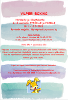 Vilperi-boxingin alkaa ti 18.1.2022 *Vilperit 6-7v klo 16.45-17.30 *Veijarit 8-10v klo 17.45-18.30