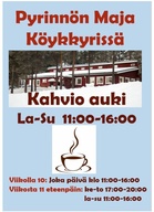 Rinne, Hissi ja Kahvio on auki keskiviikkoisin kello 17:00 - 20:00 sekä lauantaisin ja sunnuntaisin kello 11:00 - 16:00.